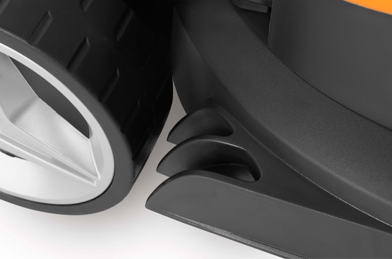 Увеличенный размер задних колес позволяет легче передвигать косилку, в том числе на неровных поверхностях.